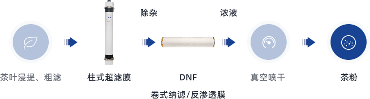 浓缩茶汁、速溶茶粉的生产,通过选择不同截留精度的浓缩膜,在保障产品收率的同时,可按需保留风味或提高澄清度。