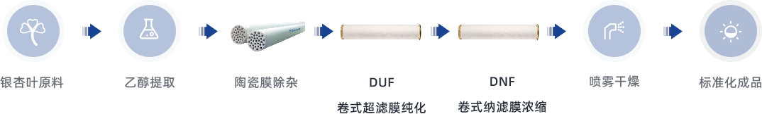 银杏叶提取物(GBE)主要含黄酮苷(24%)和萜内酯(6%),其传统生产工艺面临有机溶剂残留、热敏成分降解等痛点。膜分离技术通过物理筛分机制实现突破性改进。