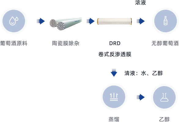 葡萄酒膜脱醇是指通过膜分离技术(如反渗透、渗透蒸发、纳滤等)选择性去除葡萄酒中的部分乙醇,从而生产低醇或无醇葡萄酒,同时尽可能保留风味物质(如多酚、芳香化合物)。该技术相比传统脱醇方法(如真空蒸馏、旋转锥蒸馏)具有显著优势,已成为现代葡萄酒行业的重要工艺。